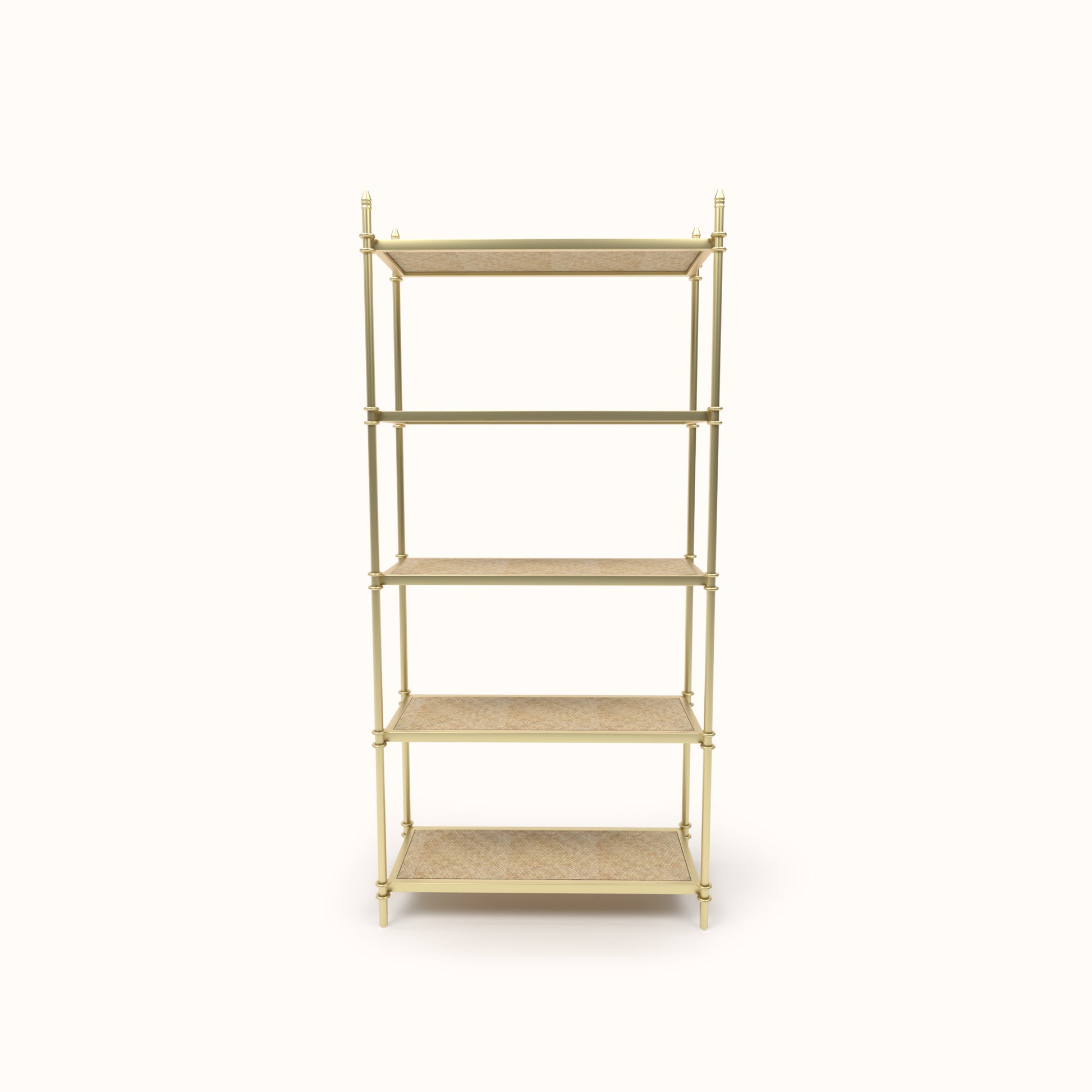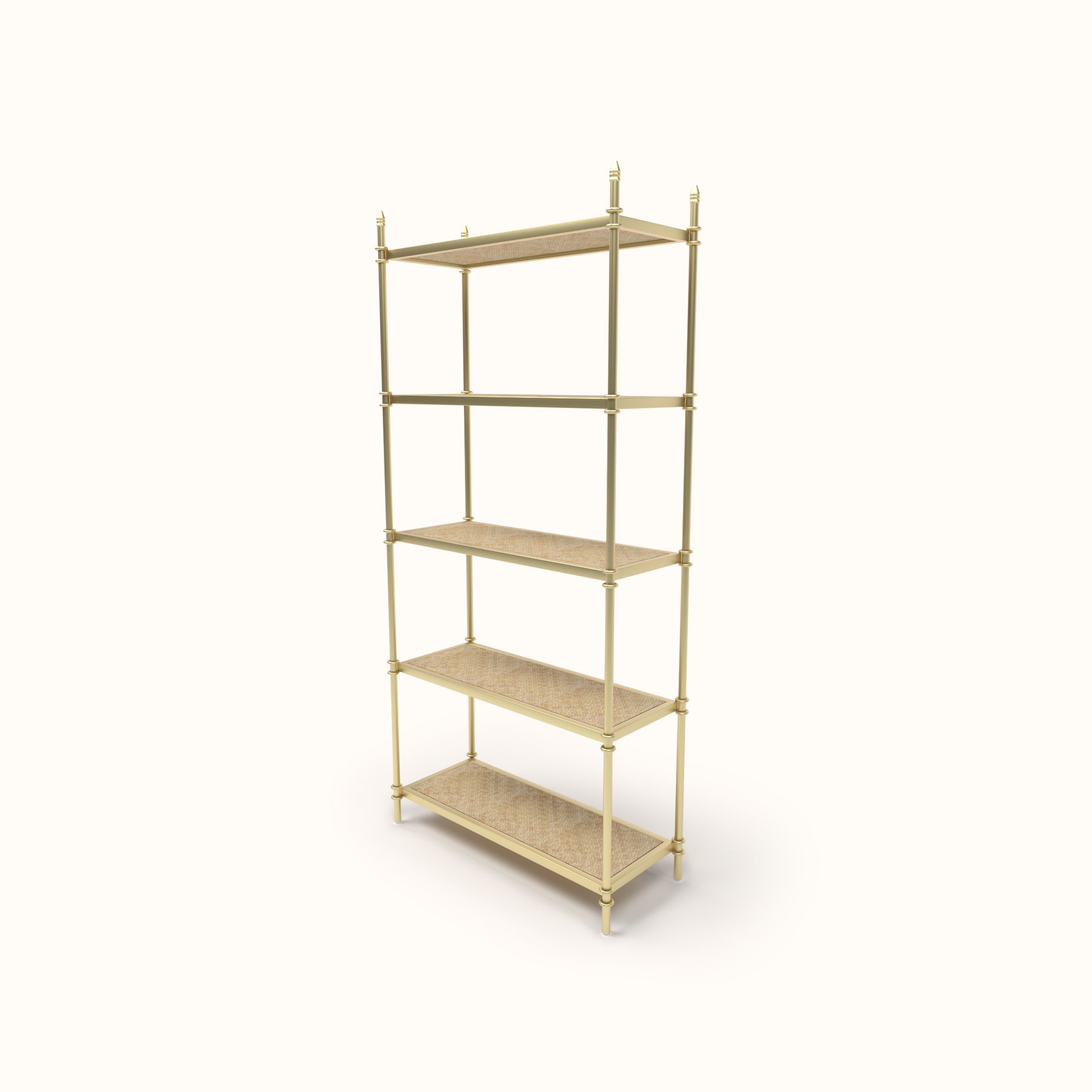 Shelves covered with rattan, a natural and sustainable material that brings warmth and texture to the design.